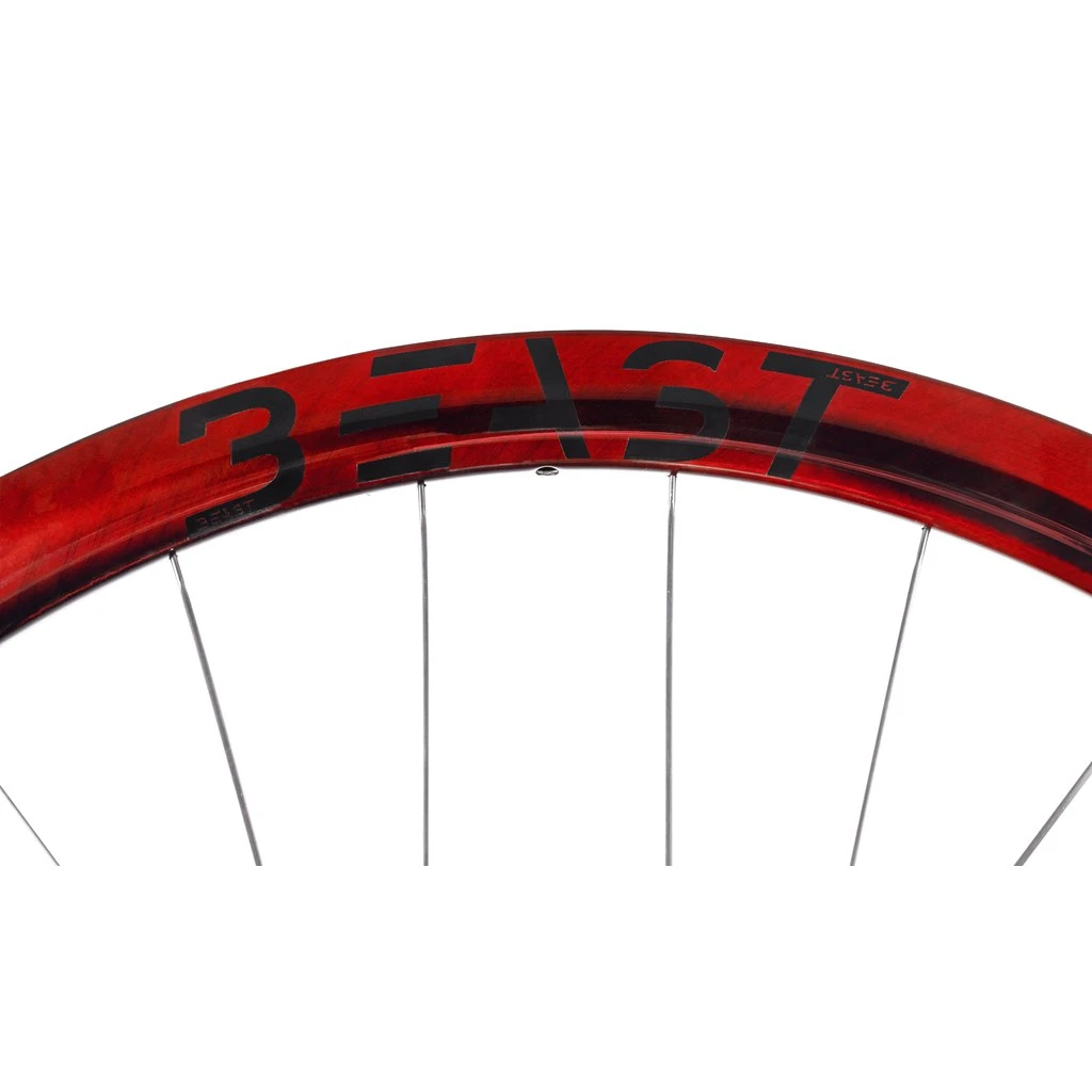 Met zijn aerodynamische vorm belichaamt de Beast Components-velg pure snelheid op de weg.