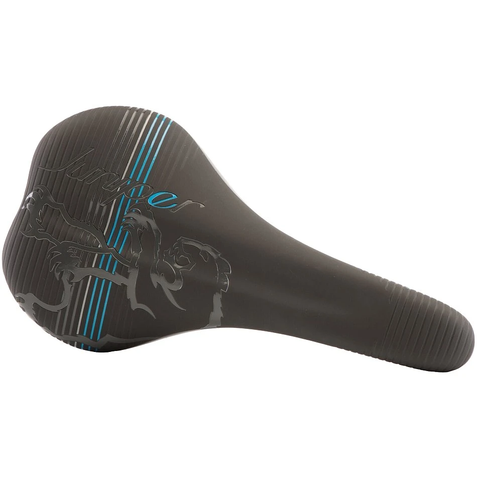 De vlakke zitzone met de centrale uitsparing helpt de druk op de zitbeenderen af te voeren. De Juniper is gemonteerd op massieve chromoly stutten. Een uitstekend model voor de zwaarste trailritten of gewoon de dagelijkse tour.