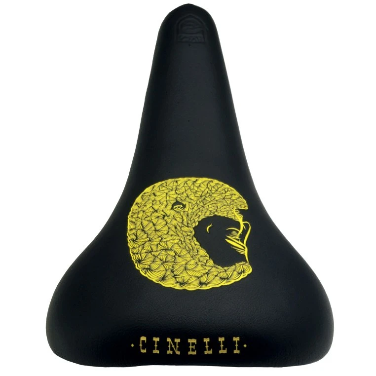 Het zadel bestaat uit een kunststof schaal en een licht gewatteerde kunstlederen bekleding, die met de grootste zorg voor detail in reliëf is aangebracht. Het zadel is slechts in één kleur verkrijgbaar: de originele Cinelli Unicanitor zwart/geel.