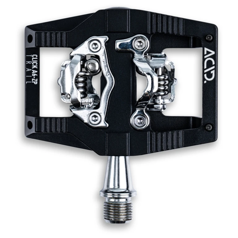 Pak je fiets en ga op pad. Stap in je ACID CLICK A6-ZP trail pedalen met hoge efficiëntie en beklim de berg van je verlangen. Door het lage gewicht bereikt u de top nog sneller en het CNC-bewerkte pedaalhuis ondersteunt uw voet tijdens de wilde afdaling. Een pedaal voor elke gelegenheid.