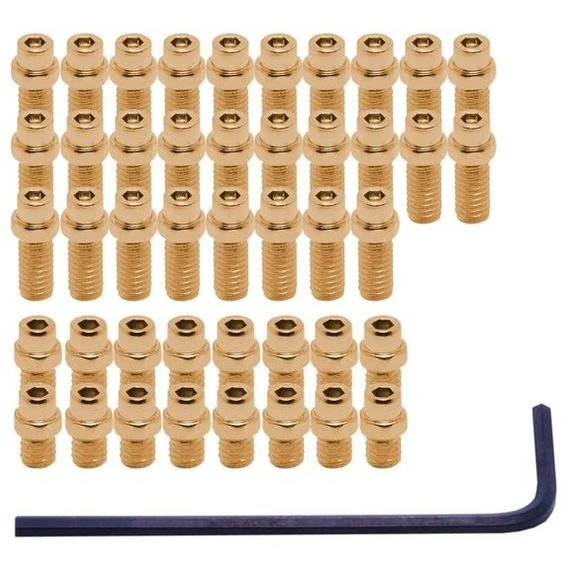 Vervangingspennen voor uw DMR Vault pedalen. Verkrijgbaar in verschillende kleuren. 16x korte pinnen (8,5mm) voor het binnenste pedaalgedeelte – 28x lange pinnen (12,5mm) voor het buitenste pedaalgedeelte. Inclusief 2mm inbussleutel.