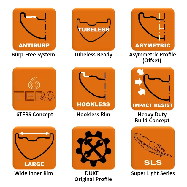 Om een hoog weerstandsniveau te bereiken, combineert het Heavy Duty ontwerp een gerichte materiaalkeuze met een optimale velggeometrie. Dankzij de interactie van hoogwaardig carbon of aluminium met de offsetconstructie absorberen DUKE HD velgen de meeste schokken en stoten, waardoor ze perfect zijn voor elk type terrein.