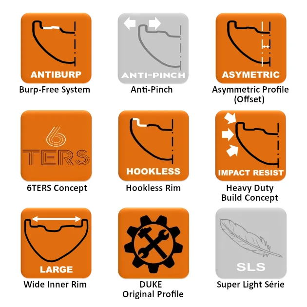 Zijn asymmetrische profiel en versterkte materiaalstructuur geven de DUKE Lucky Star aluminium velg een moderne geometrie die ideaal is voor technisch mountainbiken. Terwijl de constructie de nodige weerstand garandeert, dient een keuze uit verschillende dwarsdoorsneden om zich aan te passen aan de verschillende eigenschappen die de voor- en achterwielen vereisen.