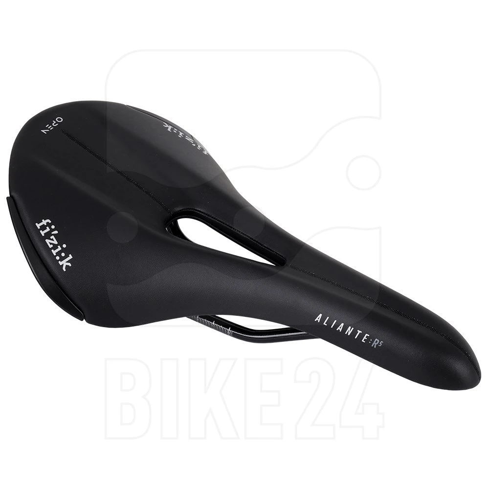 Aliante-versie met S-Alloy rails en een anatomisch uitgesneden vorm. Het zadel heeft een ontwerp met een gegolfd profiel. Deze vorm verhoogt de ondersteunende functie en flexibiliteit van het zadel wat leidt tot een verbeterde krachtoverbrenging. Zoals alle performance fi’zi:k wegzadels is de Aliante R5 Open licht, flexibel en wendbaar. Het is ontworpen voor profs, met profs en geracet door profs. De Regular-versie heeft een breedte van 143 mm.