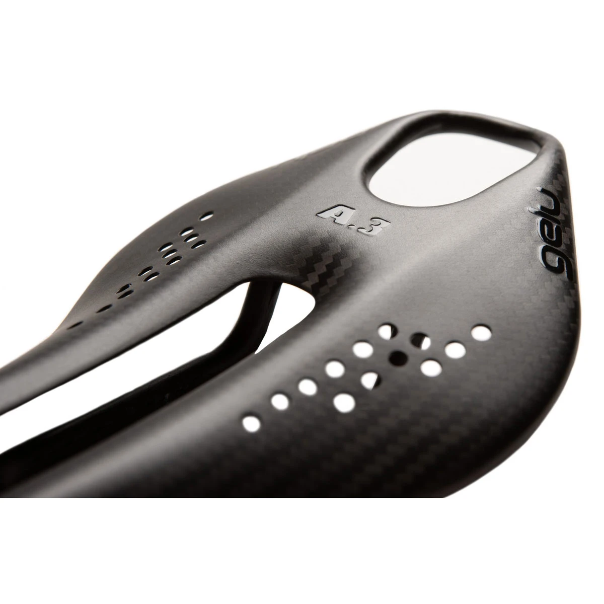 Op het eerste gezicht valt de uitstekende carbon afwerking van de Gelu zadels op – !