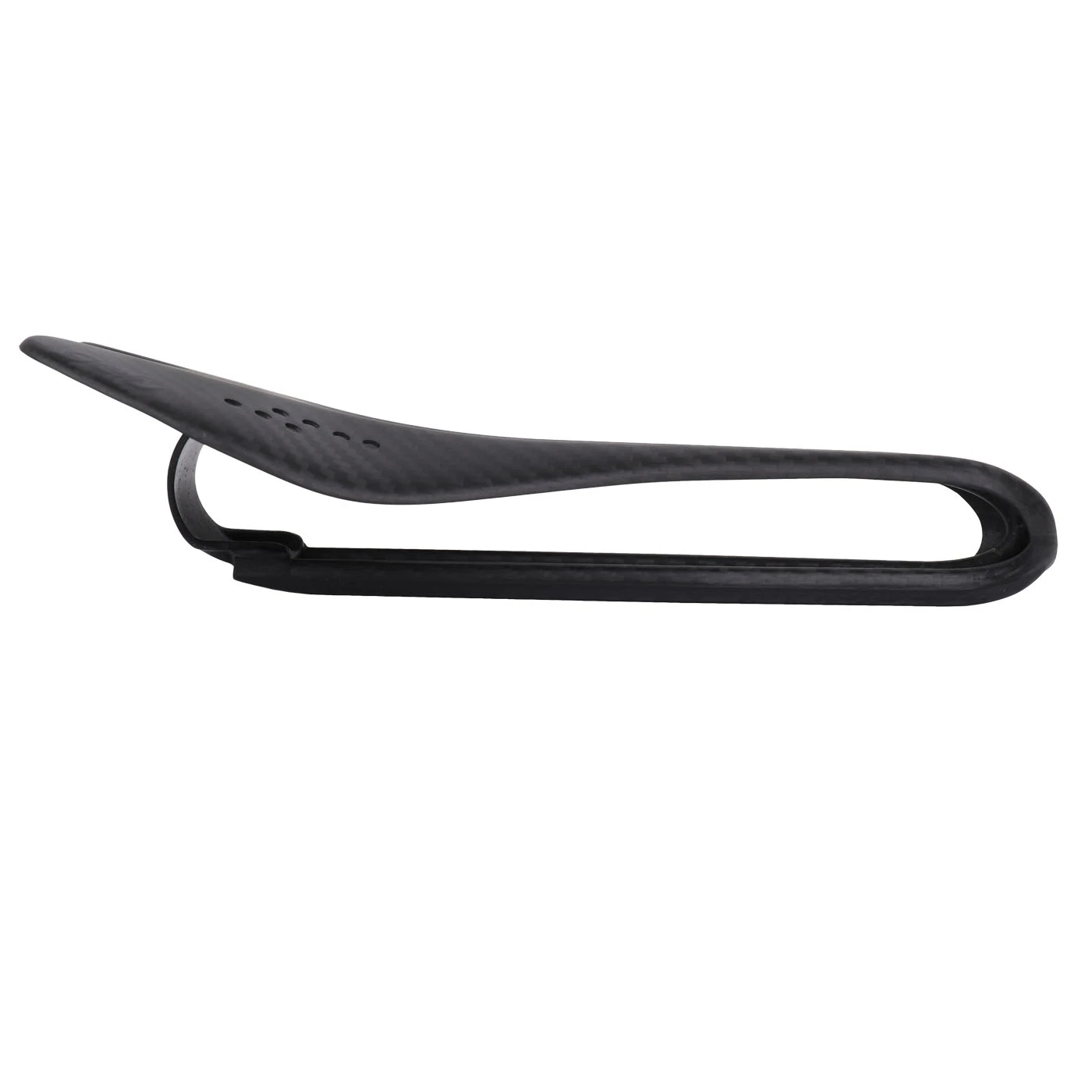 Bijzonder licht, raceklaar carbonzadel met bladveren.