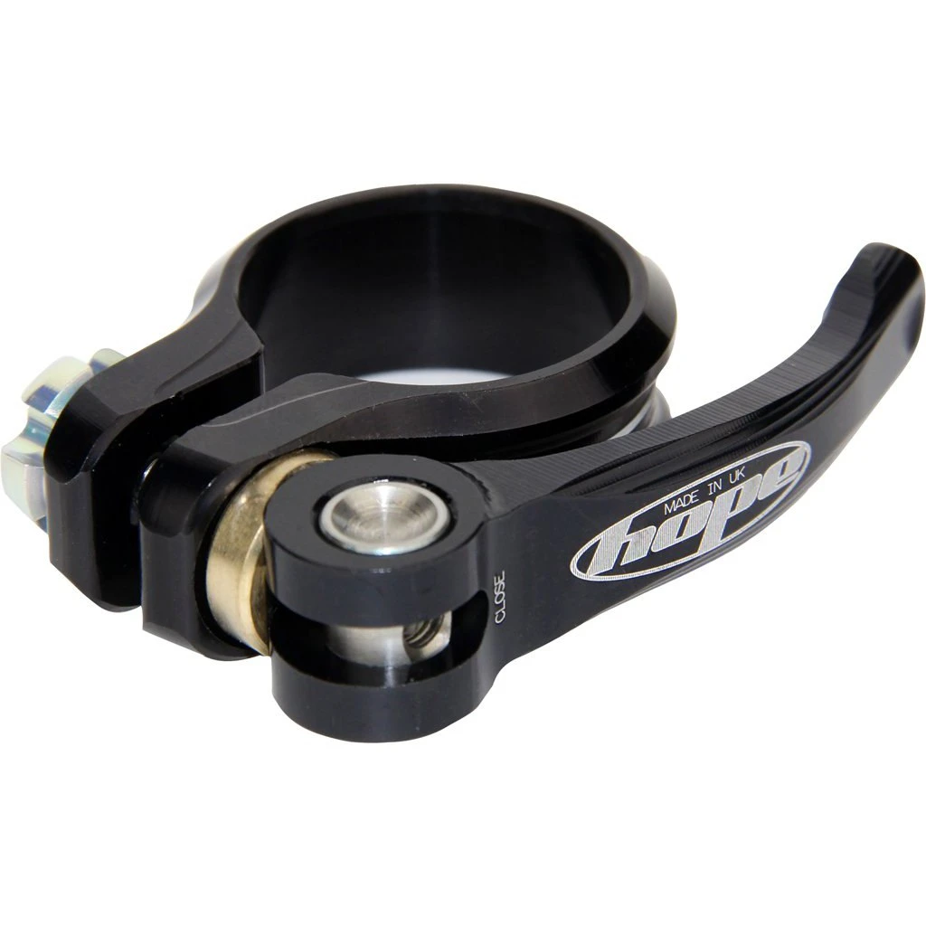 Edele zadelklem van CNC-gefreesd aluminium met ergonomische snelspanhendel die in een messing zitting loopt. De zadelpenklem van Hope combineert perfecte functionaliteit met hoge klemkracht en een individuele look. Een blikvanger op elke fiets.