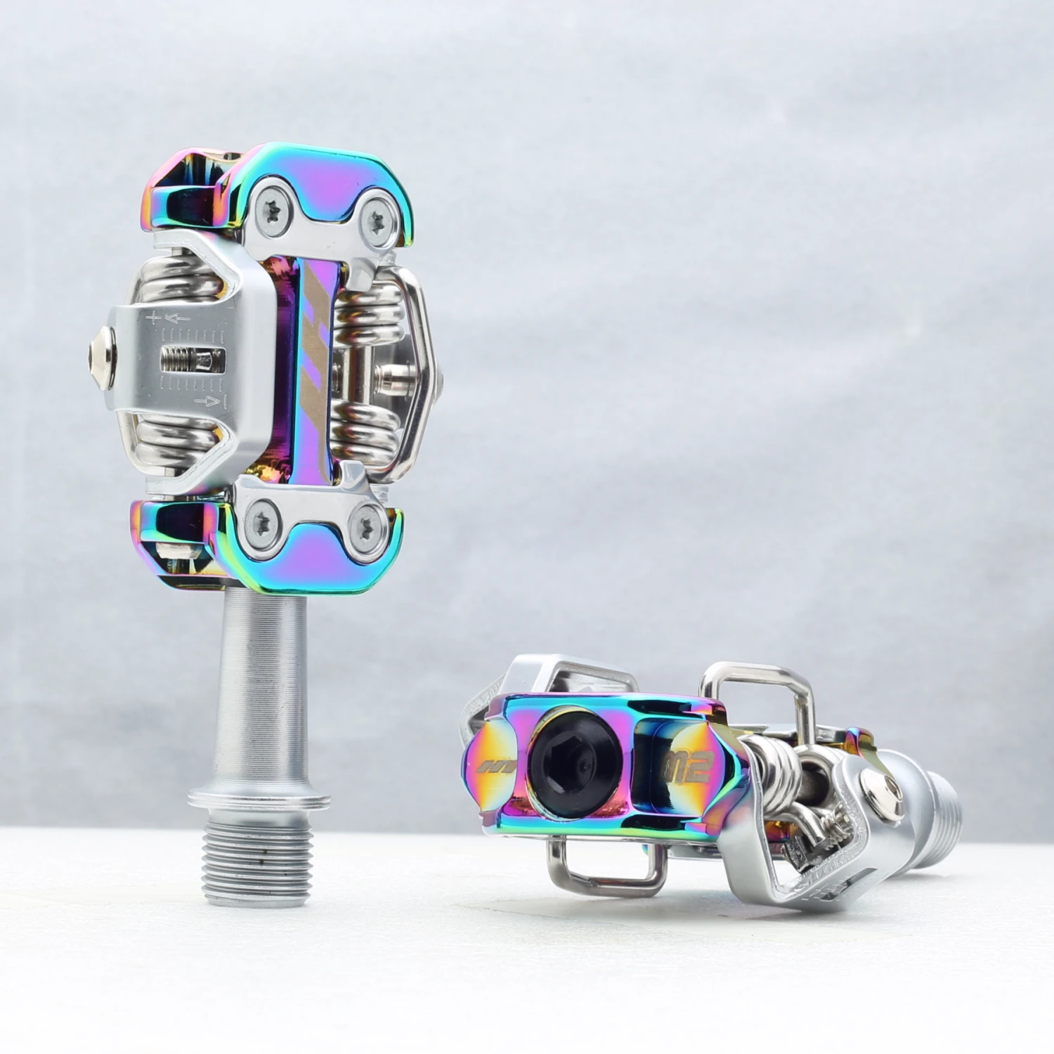 De HT M2 Leopard-M hebben een pedaalhuis van CNC bewerkt aluminium en een as van CrMo staal. Dit geeft de pedalen een superlicht gewicht en een lange levensduur. Ook de hoogwaardige afdichtingen en IGUS lagers dragen hieraan bij. Het beproefde schoenplaatjessysteem van HT houdt je voeten stevig op hun plaats, zelfs in zwaar terrein. En als het ooit riskant wordt, kun je altijd vertrouwen op het betrouwbare ontgrendelingsmechanisme.