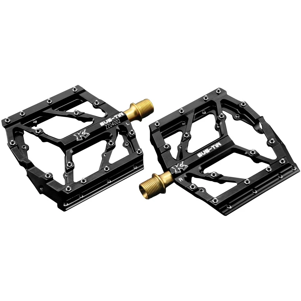 Het pedaal bestaat uit een stevige CNC-bewerkte 7075 aluminium body en een titanium-nitride gecoate en dus goudkleurige roestvrijstalen as voor minder slijtage.
