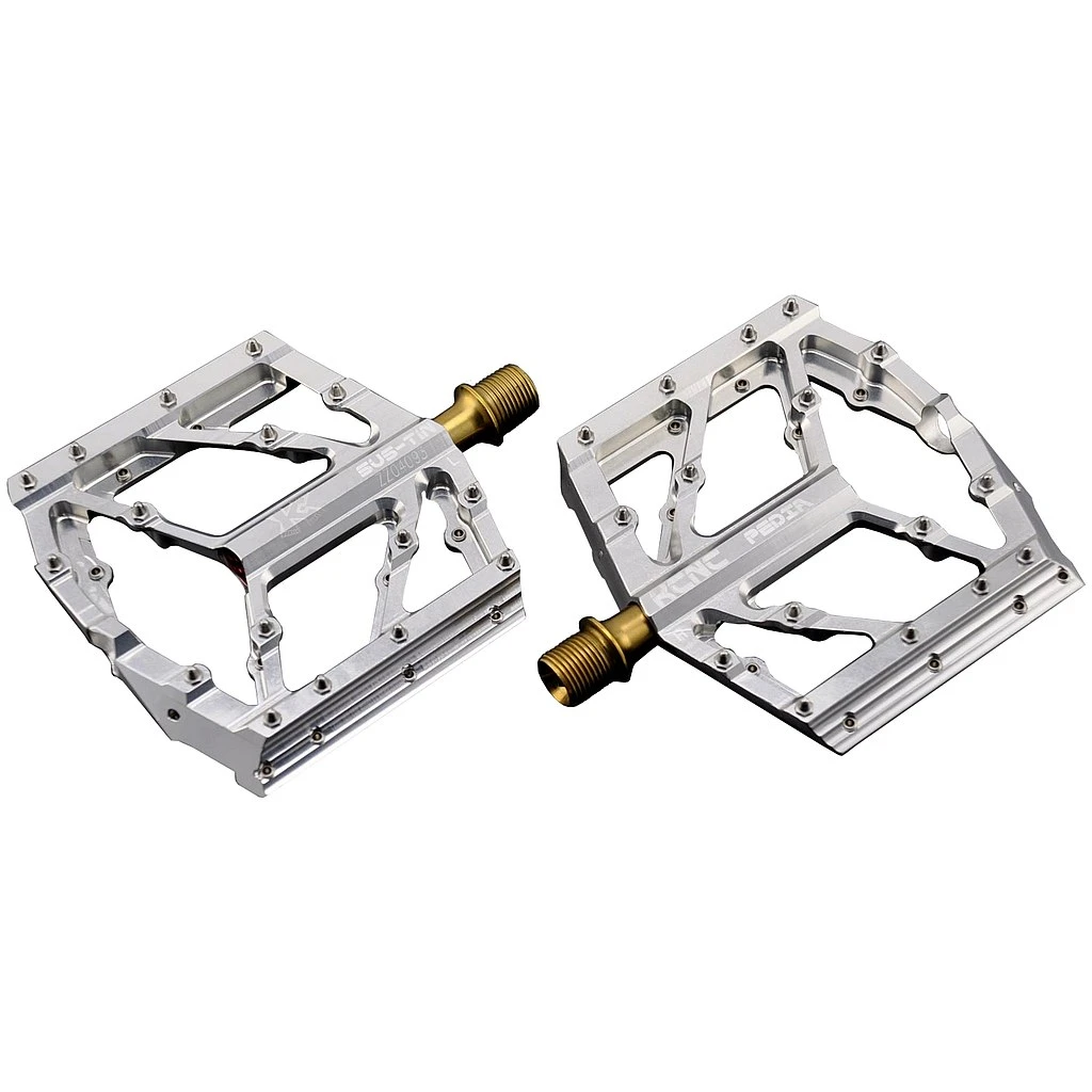 Het pedaal bestaat uit een stevige CNC-bewerkte 7075 aluminium body en een titanium-nitride gecoate en dus goudkleurige roestvrijstalen as voor minder slijtage.