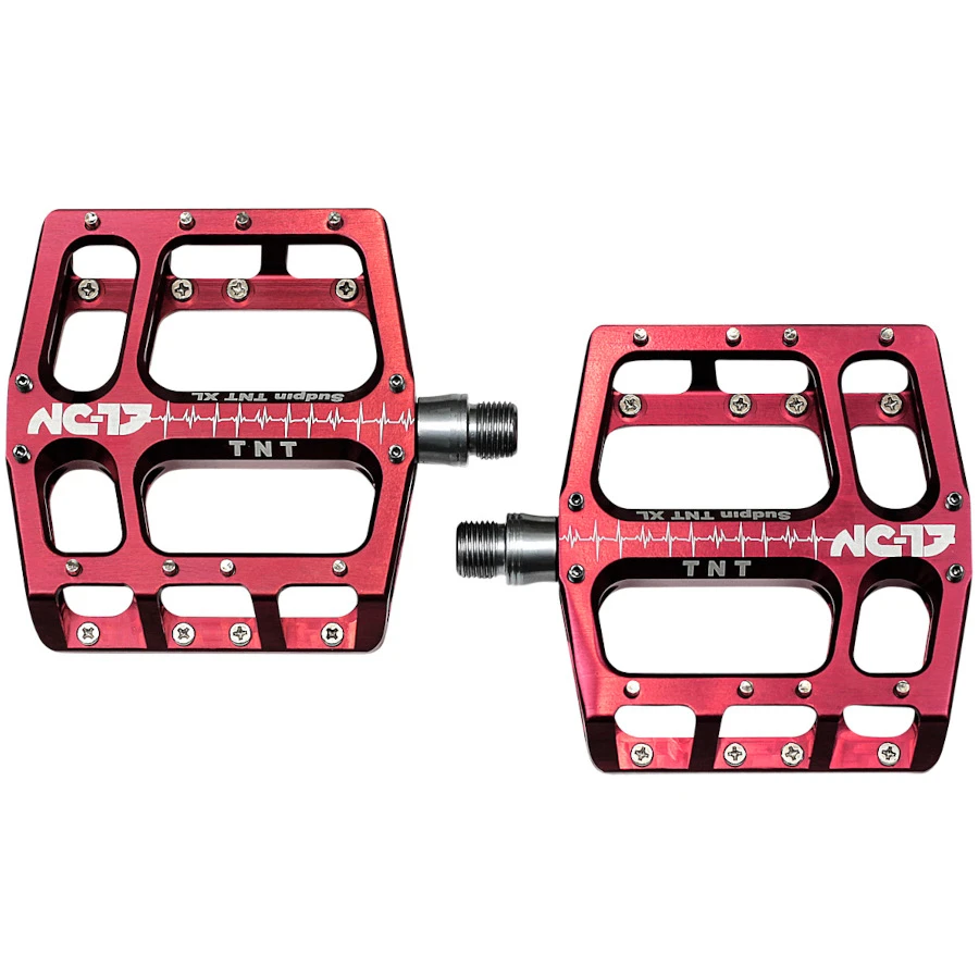 Het nieuwe CNC aluminium pedaal van NC-17 is ontwikkeld in samenwerking met atleten van wereldklasse en NC-17 teamrijders Thomas Genon en Tomas Lemoine. De grote broer van de Sudpin IV wordt gekenmerkt door het indrukwekkende concave oppervlak van 106 x 110 mm, waardoor de voet letterlijk in het pedaal zakt. Dit verhoogt de druk op het pedaal/pinnen en creëert een verbazingwekkend sterke verbinding tussen voet en pedaal.
