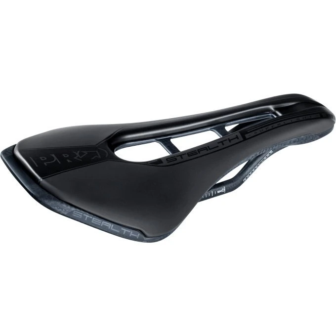 Het Stealth carbonzadel is ontworpen voor zowel weg- als MTB-gebruik. De lichtgewicht is aanzienlijk duurzamer dankzij een in-mould carbon schaal, biedt meer comfort dankzij de grote centrale uitsparing die de druk vermindert, en heeft zachtere vormen gekregen die de aerodynamica verbeteren.