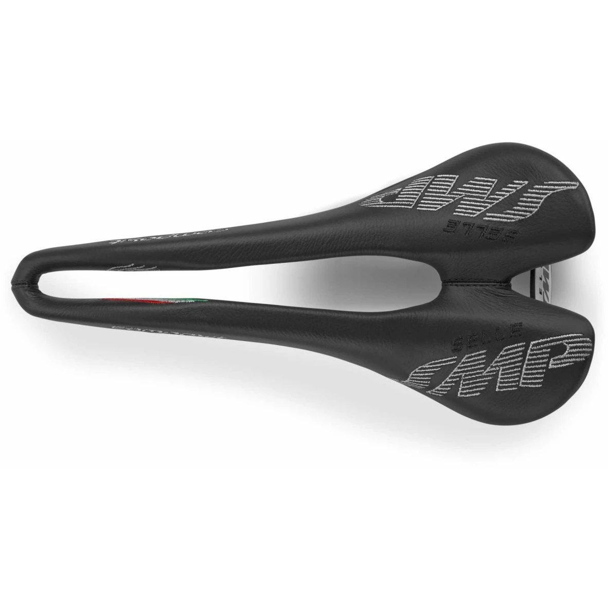 De gepatenteerde productkenmerken van Selle SMP, namelijk het vrije middenkanaal, het originele uitsteeksel (“neus”) in de vorm van een adelaarsbek en het verhoogde achterdeel, geven de modellen een interessant aerodynamisch tintje. De breedte van het centrale kanaal van het zadel zorgt voor een optimale ventilatie van de intieme zone, die meestal in contact staat met het zadel. Het gebied van de buikholte met zijn organen rust op het centrale kanaal, dat tot 5 cm breed is, en wordt niet afgekneld, waardoor een natuurlijke, volledige en continue bloedcirculatie wordt gegarandeerd. In het achterste gedeelte van het zadel bevindt zich een holte die ervoor zorgt dat het stuitbeen het zadel niet raakt, waardoor terugslag en tegenslag worden voorkomen.